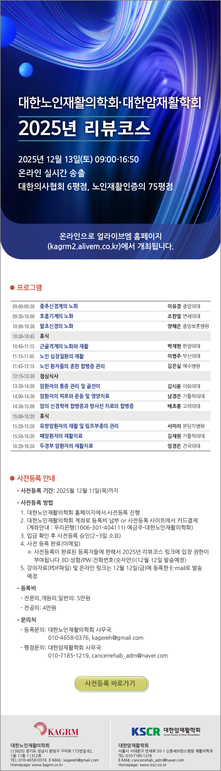 ´ëÇѳëÀÎÀçȰÀÇÇÐȸ¡¤´ëÇѾÏÀçȰÇÐȸ 2025³â ¸®ºäÄÚ½º ¾È³»